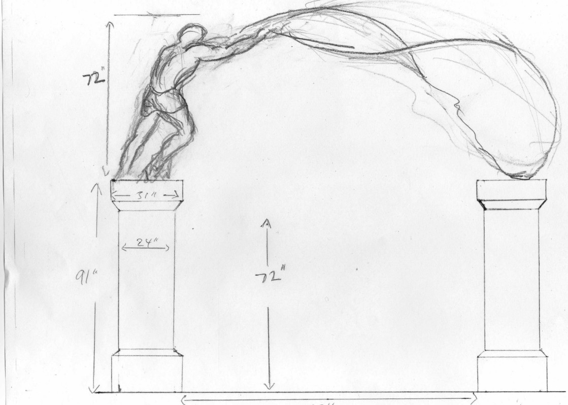 Practical considerations with this sculpture involved placing a life-sized figure and large casting net in an exposed situation on pillars which link the city of Plymouth to the Minster Church, and structural considerations that were necessary in building an arch in which the figure would be made of bronze resin, and the net of stainless steel.