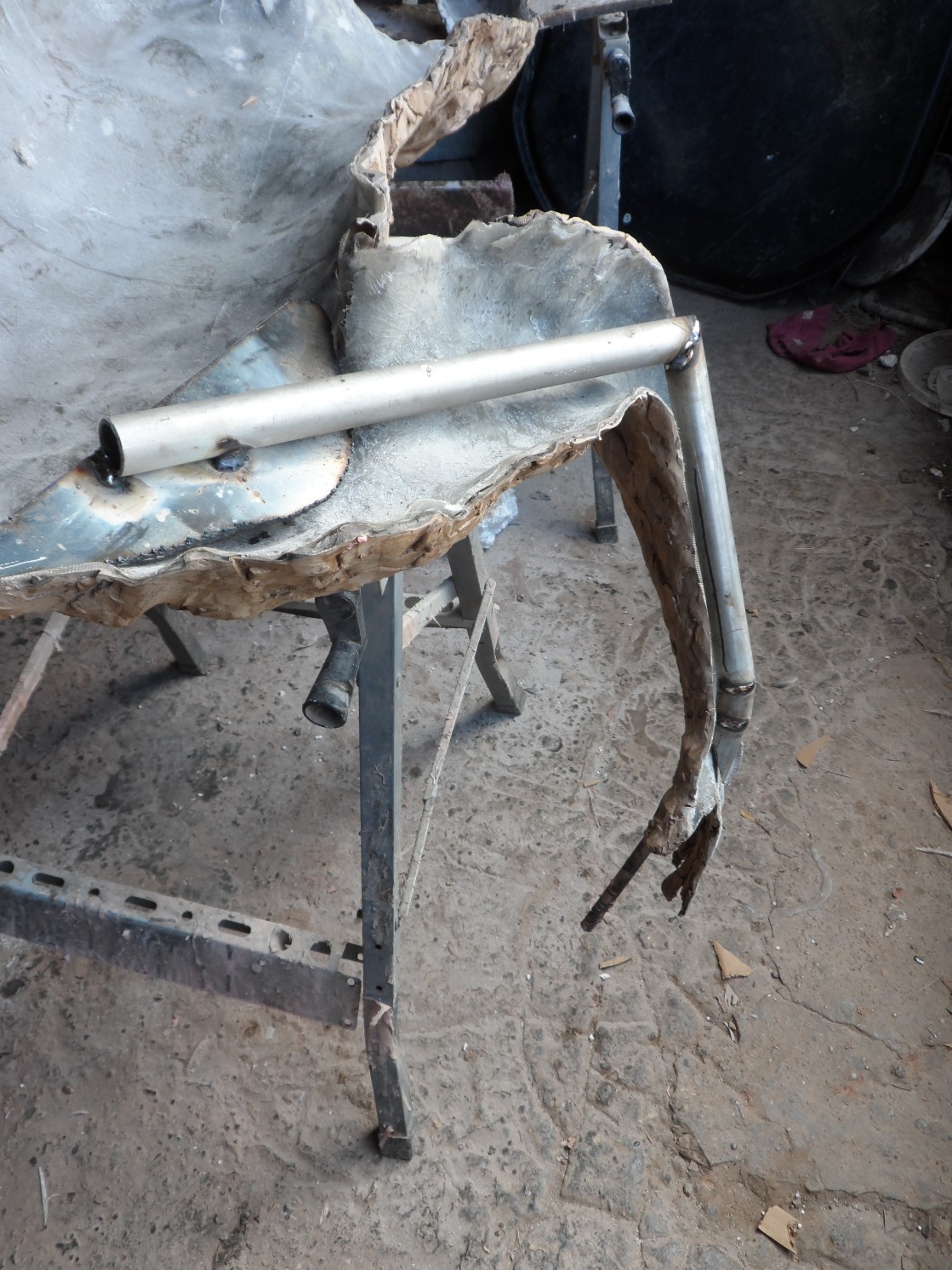 In this instance however, because of added strains involved in creating an arch in an exposed location, I had all stress points reinforced with stainless steel plate and tube, as illustrated in this image of the inside of an arm and shoulder.